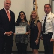 from left: Morris County Sheriff’s Office Undersheriff Mark Spitzer, Morristown High School Training Coordinator Patricia Herbert, Morris County Sheriff’s Office Detective Lt. Denise Thornton, MCSO Training Coordinator Sgt. Walter Rawa, Morristown High School Colonial L.I.F.E. Job Coach Jonathan Mestell, MCSO Intern Kevin Hasenbein, MCSO Sheriff James M. Gannon.